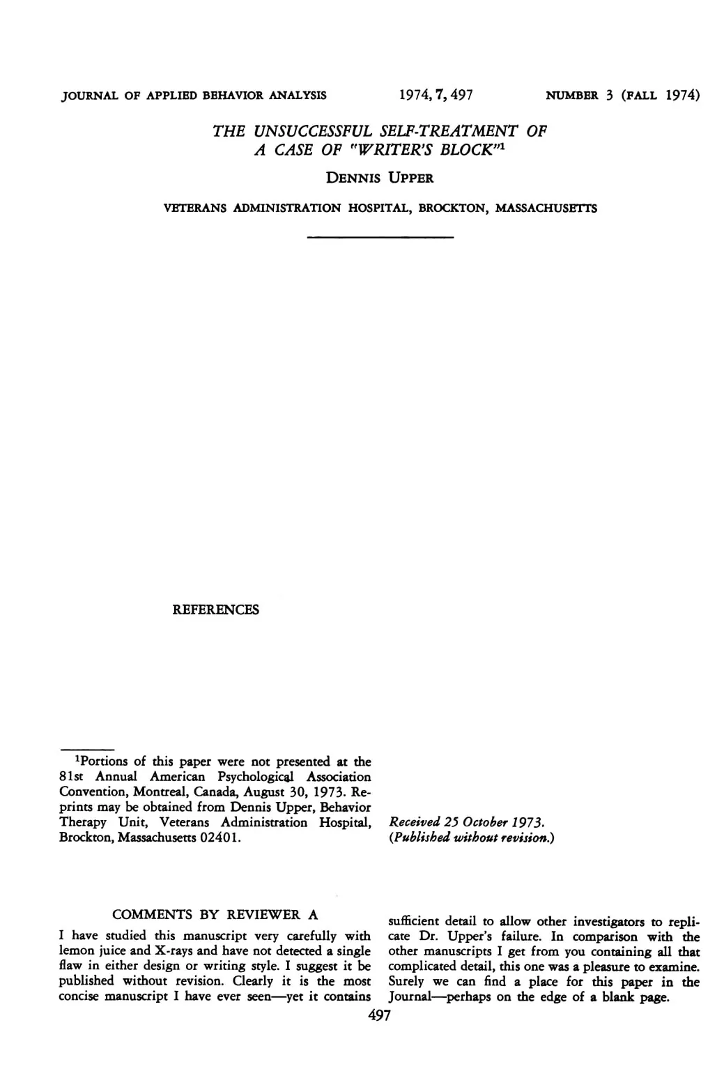 Рецензент внимательно изучил рукопись и не обнаружил ни единого изъяна ни в структуре, ни в стиле изложения, поэтому её публиковали без правок. Рукопись содержит достаточно деталей, чтобы позволить другим исследователям воспроизвести неудачу доктора Аппера.