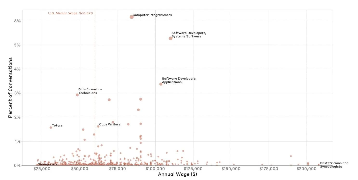 — 50% разговоров — это анализ чатов с нейросетью для министерства труда США