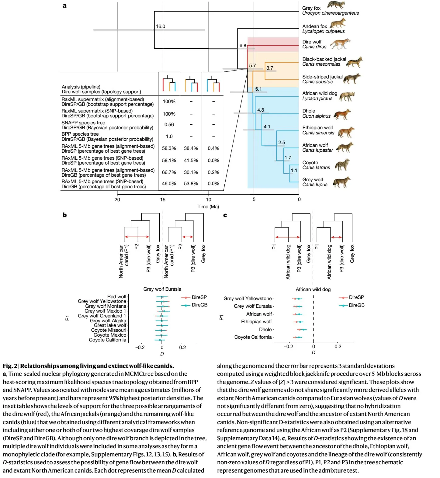 Сама научная работа по настоящим лютоволкам (точнее, Canis dirus, дословно — собака страшная): там описаны эти 46 образцов, из них 5 оказались с достаточным количеством материала, и если митохондриальные более-менее целые, то ядерные последовательности почти поломались. 2 из 5 образцов дали больше 90% информации. Именно эти два и забрали Колоссал позже.