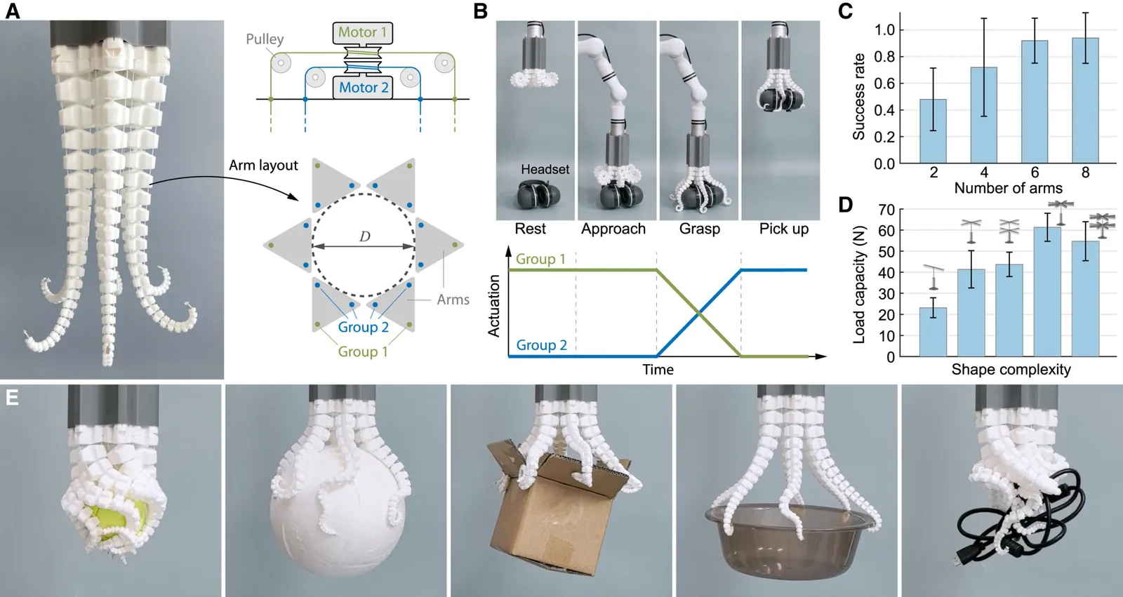 По большей части движения скопировались с осьминога, включая некоторую автономность щупальца. Как и с осьминогом, захват автоматический, то есть просто по факту прикосновения объект уже огибается и удерживается.