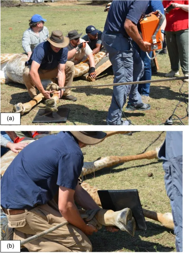 Ученые с ветеринарами хорошо подготовились и притащили в саванну портативный рентген с генератором и аппарат УЗИ. Завели генератор, на УЗИ быстро проверили, не беременна ли самка. Это важно, потому что жирафы вынашивают детенышей 15 месяцев. Если бы она была беременна, плод бы быстро набирал вес, увеличивал бы нагрузку на сломанную ногу, и сделало бы лечение бесполезным.