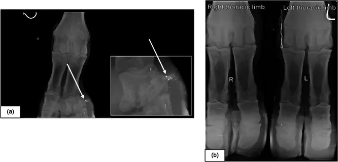 Увидели глубокую трещину в копыте справа спереди. Рентген — перелом одной из костей пальца. Скорее всего, жирафа оступилась на крутом каменистом склоне.