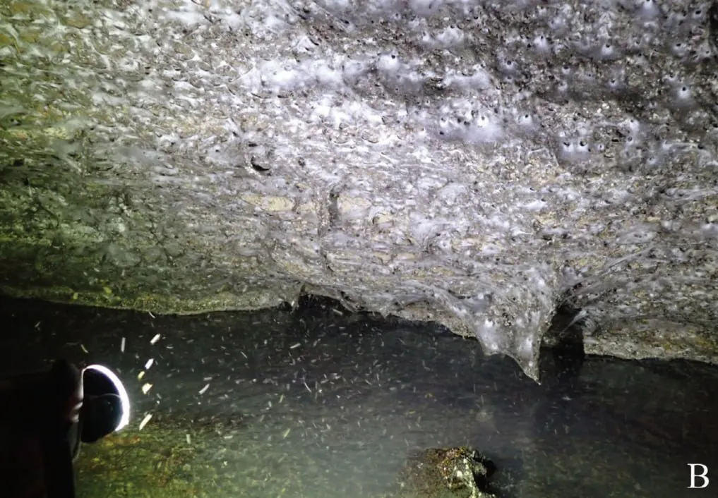 Сама пещера серная и вонючая — вам бы там не понравилось. Зато из-за природного сероводорода внутри есть вкусные бактериальные ковры — плёнки слизи на воде. Это хороший корм для личинок мух. А мухи — уже для пауков. Получается пищевая цепочка, компактно упакованная в пещеру. Даже генетически жильцы пещеры отличаются от остальных — они там уже затеяли свою эволюцию.