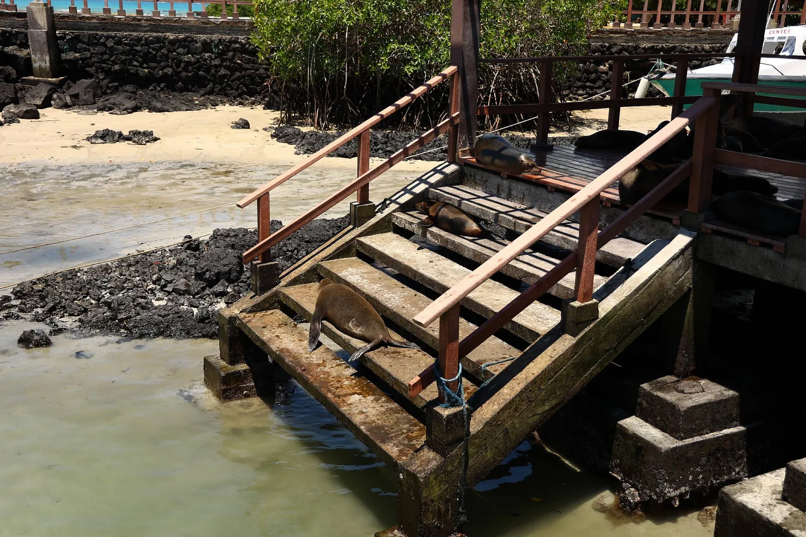 Вот, например, фотографии с Галапагосских островов. Я там аккуратно обходил котиков, чтобы не наступить. Наступать нельзя, они охраняемый вид.